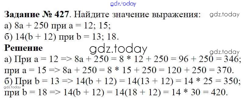 На страницах сайта gdz.today вы найдете учебный и вспомогательный материал, направленный на улучшения знаний школьной программы. ГДЗ - онлайн мир знаний Решение к главе 1. Натуральные числа (упражнения с 1 по 849) 427 Учебнику по Математике для 5 класса Виленкин, Жохов Мнемозина 2013