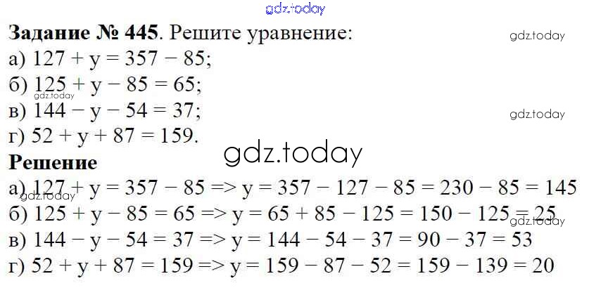 На страницах сайта gdz.today вы найдете учебный и вспомогательный материал, направленный на улучшения знаний школьной программы. ГДЗ - онлайн мир знаний Решение к главе 1. Натуральные числа (упражнения с 1 по 849) 445 Учебнику по Математике для 5 класса Виленкин, Жохов Мнемозина 2013