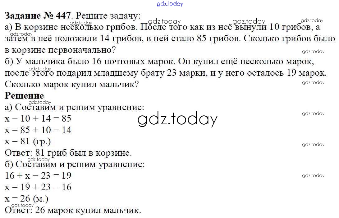 На страницах сайта gdz.today вы найдете учебный и вспомогательный материал, направленный на улучшения знаний школьной программы. ГДЗ - онлайн мир знаний Решение к главе 1. Натуральные числа (упражнения с 1 по 849) 447 Учебнику по Математике для 5 класса Виленкин, Жохов Мнемозина 2013