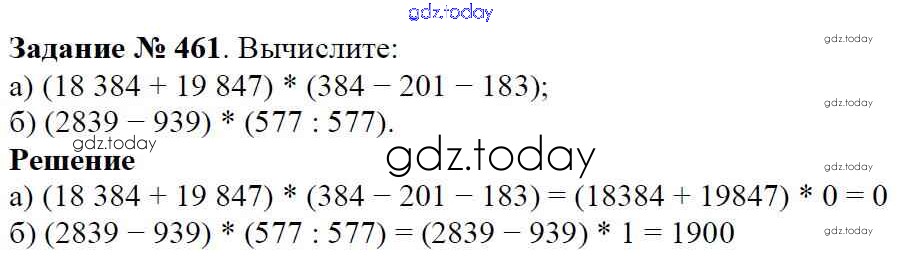 На страницах сайта gdz.today вы найдете учебный и вспомогательный материал, направленный на улучшения знаний школьной программы. ГДЗ - онлайн мир знаний Решение к главе 1. Натуральные числа (упражнения с 1 по 849) 461 Учебнику по Математике для 5 класса Виленкин, Жохов Мнемозина 2013