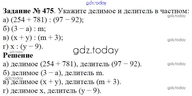 На страницах сайта gdz.today вы найдете учебный и вспомогательный материал, направленный на улучшения знаний школьной программы. ГДЗ - онлайн мир знаний Решение к главе 1. Натуральные числа (упражнения с 1 по 849) 475 Учебнику по Математике для 5 класса Виленкин, Жохов Мнемозина 2013