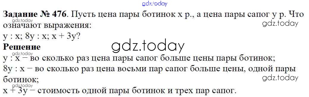 На страницах сайта gdz.today вы найдете учебный и вспомогательный материал, направленный на улучшения знаний школьной программы. ГДЗ - онлайн мир знаний Решение к главе 1. Натуральные числа (упражнения с 1 по 849) 476 Учебнику по Математике для 5 класса Виленкин, Жохов Мнемозина 2013