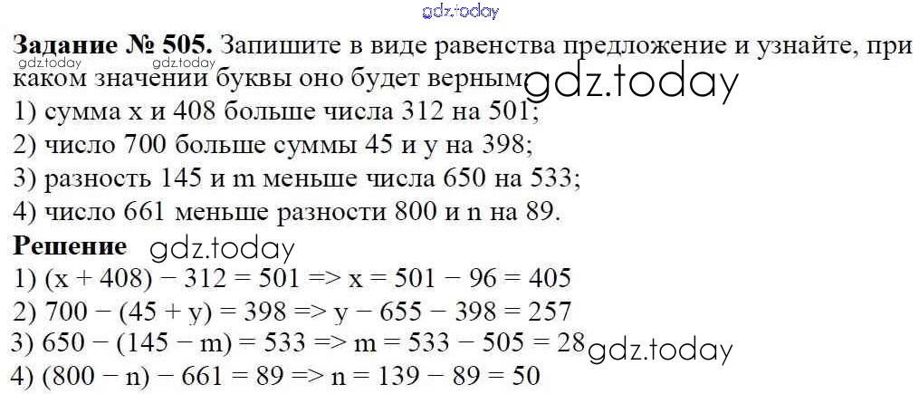 На страницах сайта gdz.today вы найдете учебный и вспомогательный материал, направленный на улучшения знаний школьной программы. ГДЗ - онлайн мир знаний Решение к главе 1. Натуральные числа (упражнения с 1 по 849) 505 Учебнику по Математике для 5 класса Виленкин, Жохов Мнемозина 2013