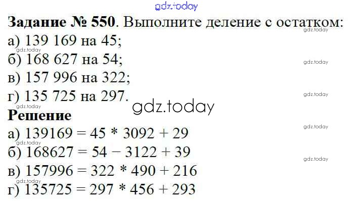На страницах сайта gdz.today вы найдете учебный и вспомогательный материал, направленный на улучшения знаний школьной программы. ГДЗ - онлайн мир знаний Решение к главе 1. Натуральные числа (упражнения с 1 по 849) 550 Учебнику по Математике для 5 класса Виленкин, Жохов Мнемозина 2013
