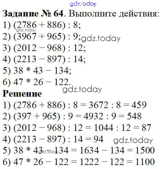 На страницах сайта gdz.today вы найдете учебный и вспомогательный материал, направленный на улучшения знаний школьной программы. ГДЗ - онлайн мир знаний Решение к главе 1. Натуральные числа (упражнения с 1 по 849) 64 Учебнику по Математике для 5 класса Виленкин, Жохов Мнемозина 2013