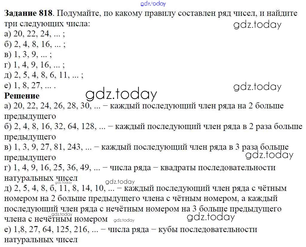 На страницах сайта gdz.today вы найдете учебный и вспомогательный материал, направленный на улучшения знаний школьной программы. ГДЗ - онлайн мир знаний Решение к главе 1. Натуральные числа (упражнения с 1 по 849) 818 Учебнику по Математике для 5 класса Виленкин, Жохов Мнемозина 2013