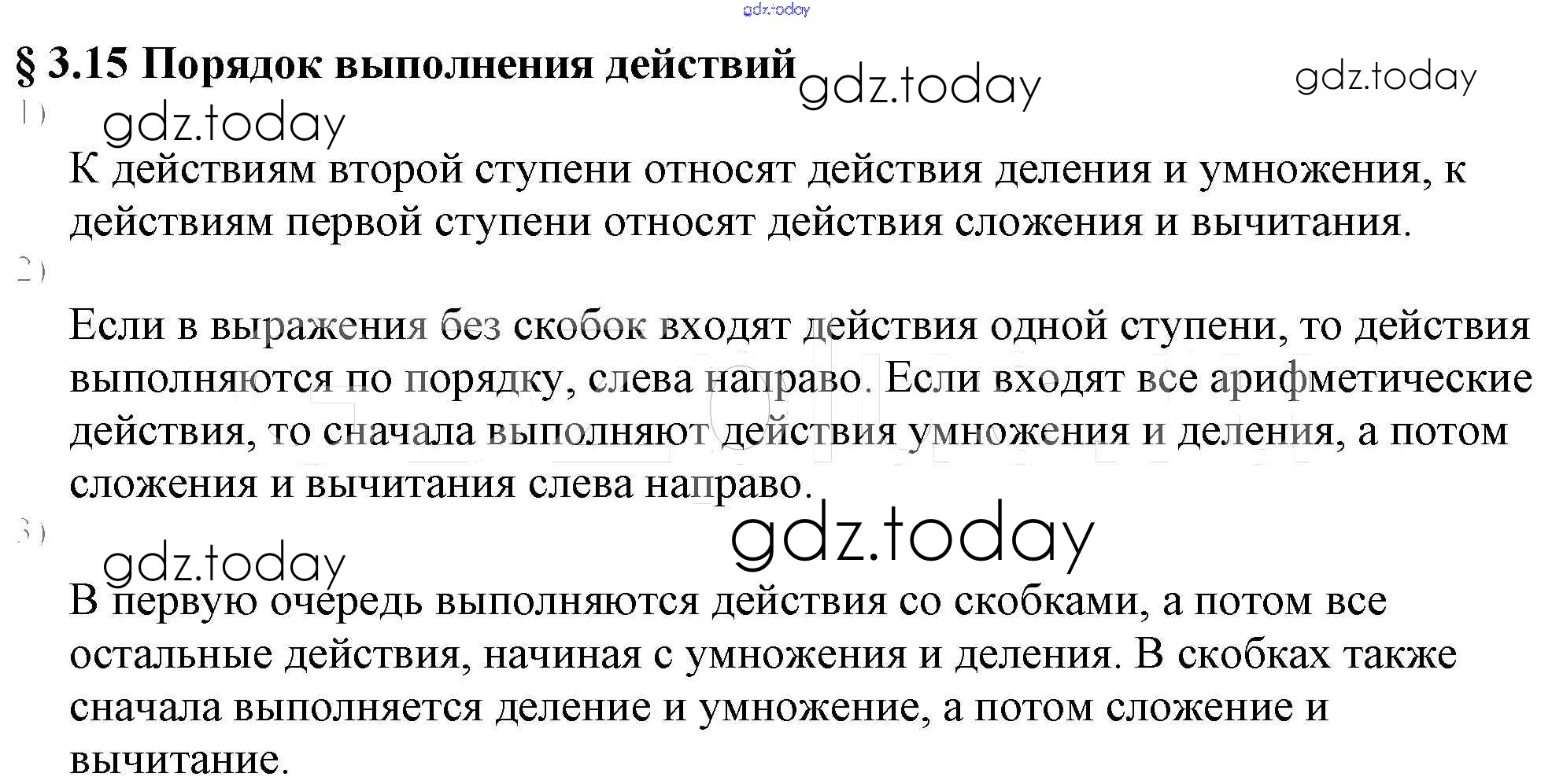 На страницах сайта gdz.today вы найдете учебный и вспомогательный материал, направленный на улучшения знаний школьной программы. ГДЗ - онлайн мир знаний Решение к вопросам 15 Учебнику по Математике для 5 класса Виленкин, Жохов Мнемозина 2013