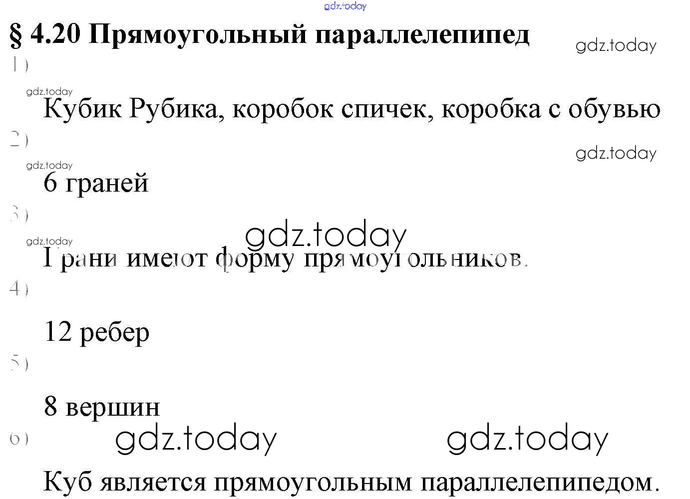 На страницах сайта gdz.today вы найдете учебный и вспомогательный материал, направленный на улучшения знаний школьной программы. ГДЗ - онлайн мир знаний Решение к вопросам 20 Учебнику по Математике для 5 класса Виленкин, Жохов Мнемозина 2013