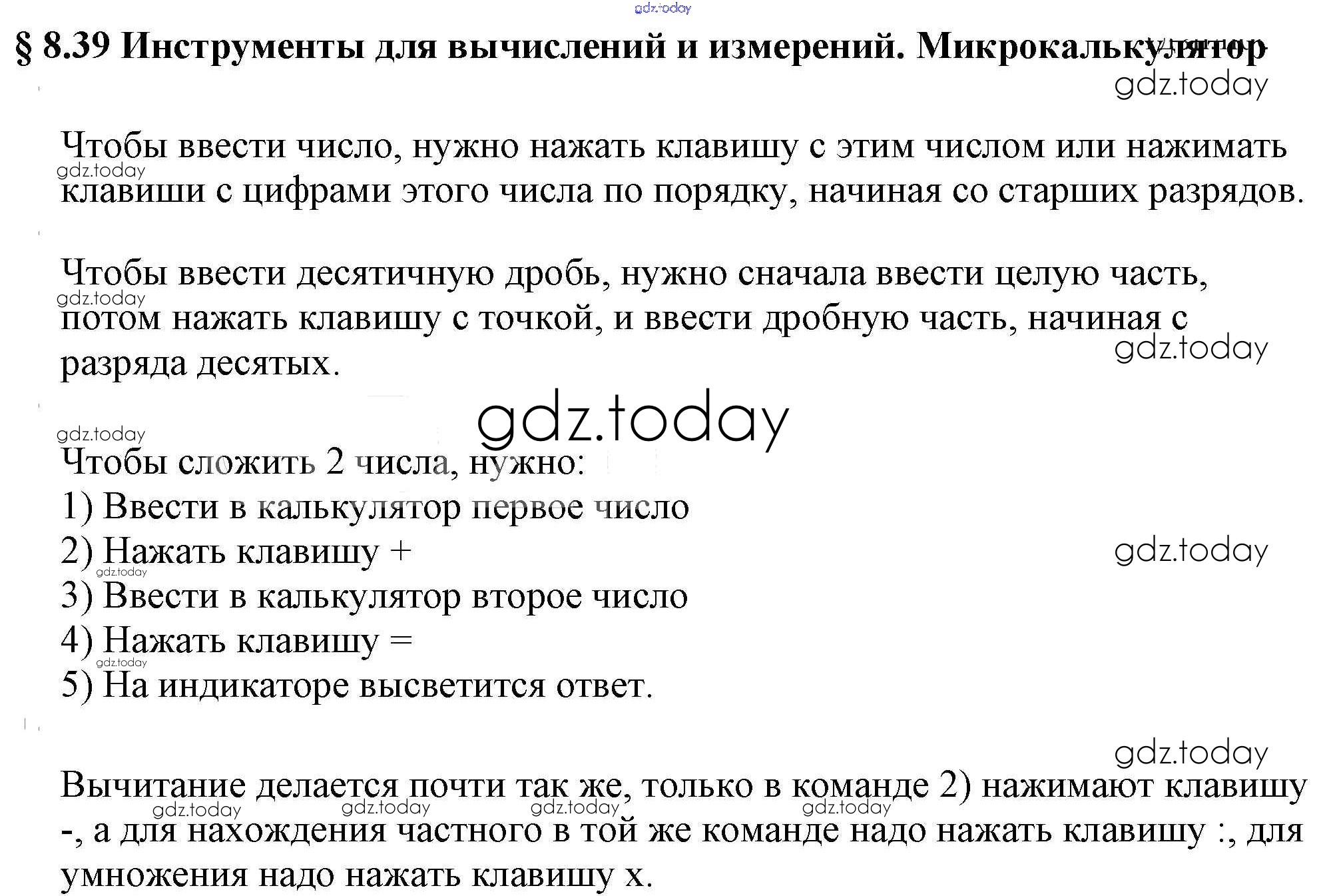 На страницах сайта gdz.today вы найдете учебный и вспомогательный материал, направленный на улучшения знаний школьной программы. ГДЗ - онлайн мир знаний Решение к вопросам 39 Учебнику по Математике для 5 класса Виленкин, Жохов Мнемозина 2013