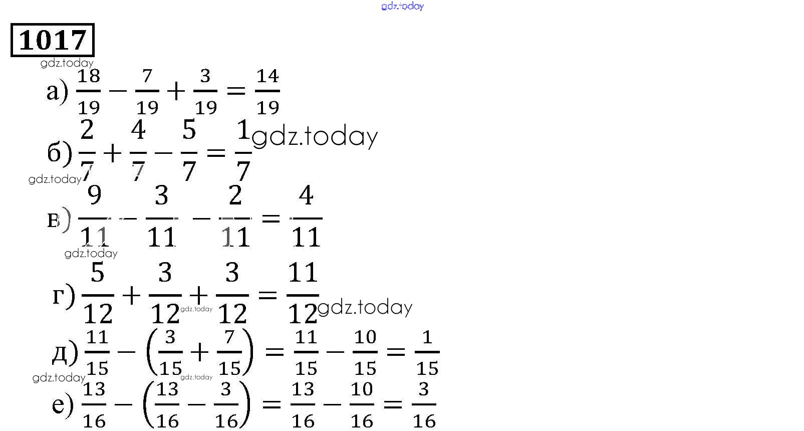 Ответы к Решение к главе2. Дробные числа (упражнения с 850 по 1849) 1017 Учебнику по Математике для 5 класса Виленкин, Жохов Мнемозина 2013