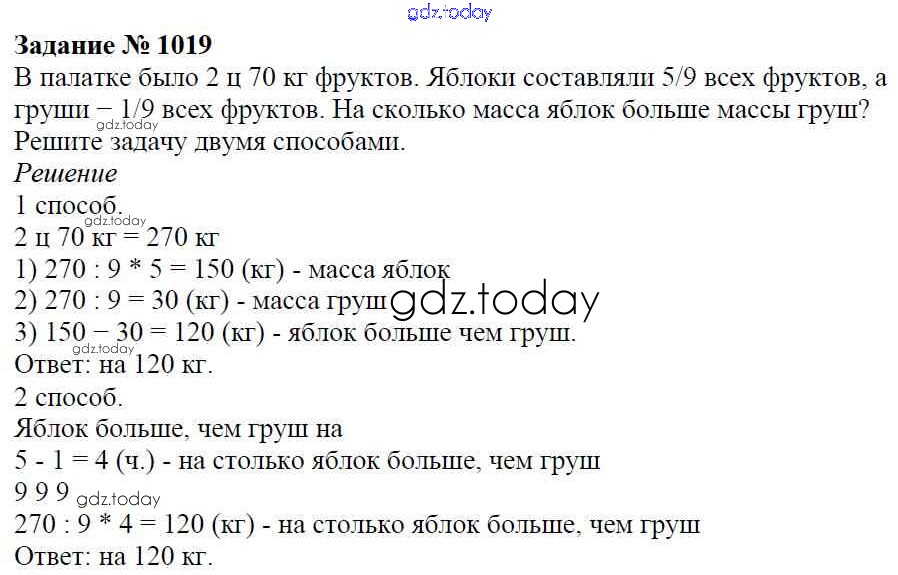 На страницах сайта gdz.today вы найдете учебный и вспомогательный материал, направленный на улучшения знаний школьной программы. ГДЗ - онлайн мир знаний Решение к главе2. Дробные числа (упражнения с 850 по 1849) 1019 Учебнику по Математике для 5 класса Виленкин, Жохов Мнемозина 2013
