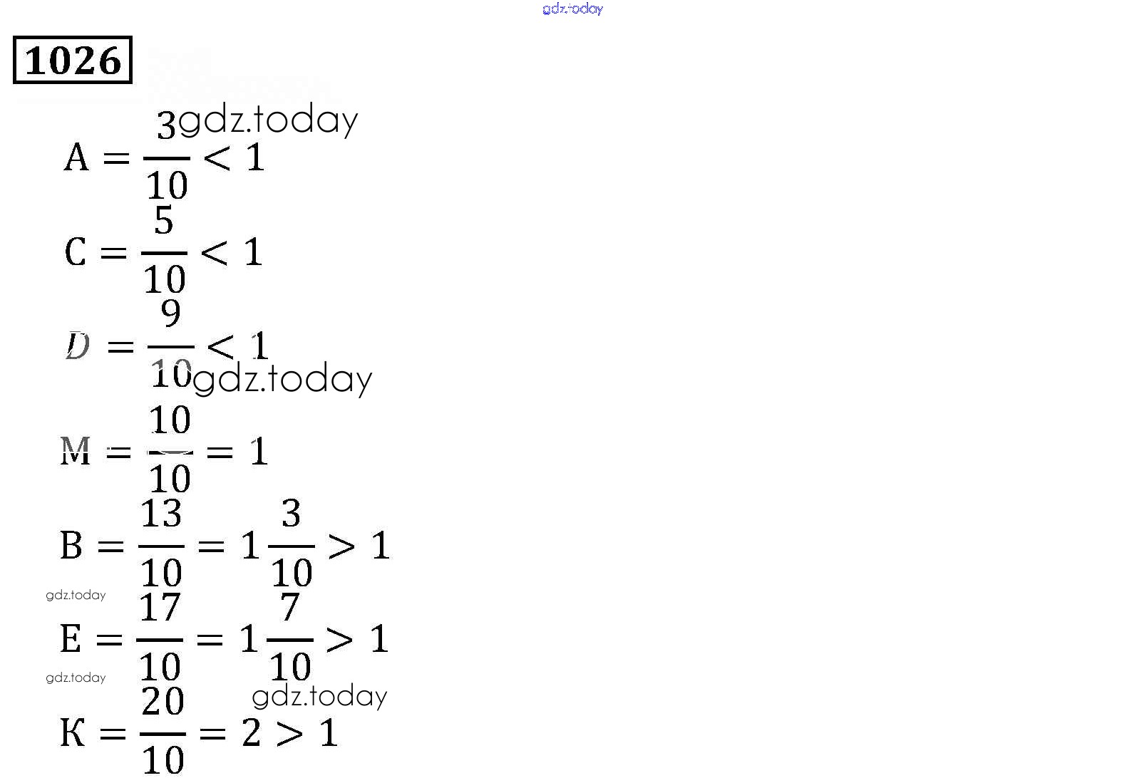 На страницах сайта gdz.today вы найдете учебный и вспомогательный материал, направленный на улучшения знаний школьной программы. ГДЗ - онлайн мир знаний Решение к главе2. Дробные числа (упражнения с 850 по 1849) 1026 Учебнику по Математике для 5 класса Виленкин, Жохов Мнемозина 2013