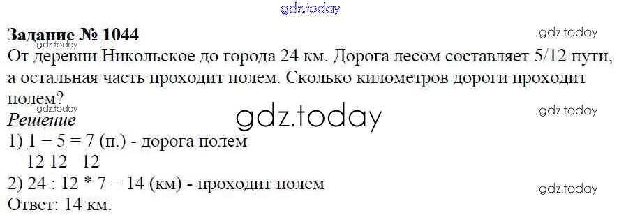 На страницах сайта gdz.today вы найдете учебный и вспомогательный материал, направленный на улучшения знаний школьной программы. ГДЗ - онлайн мир знаний Решение к главе2. Дробные числа (упражнения с 850 по 1849) 1044 Учебнику по Математике для 5 класса Виленкин, Жохов Мнемозина 2013