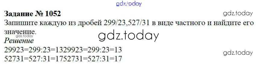На страницах сайта gdz.today вы найдете учебный и вспомогательный материал, направленный на улучшения знаний школьной программы. ГДЗ - онлайн мир знаний Решение к главе2. Дробные числа (упражнения с 850 по 1849) 1052 Учебнику по Математике для 5 класса Виленкин, Жохов Мнемозина 2013