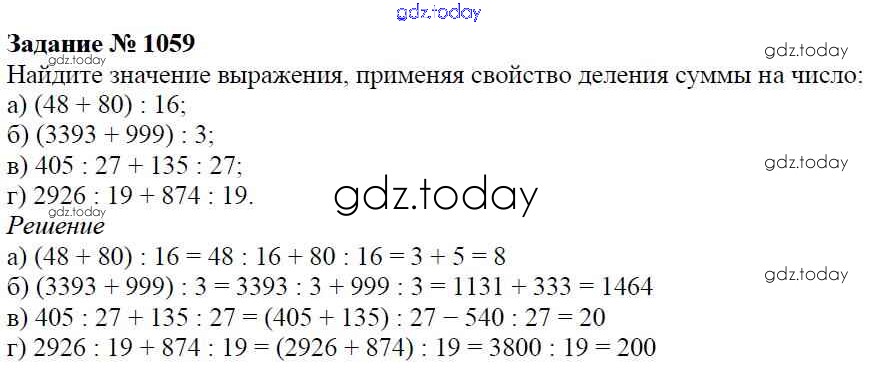 На страницах сайта gdz.today вы найдете учебный и вспомогательный материал, направленный на улучшения знаний школьной программы. ГДЗ - онлайн мир знаний Решение к главе2. Дробные числа (упражнения с 850 по 1849) 1059 Учебнику по Математике для 5 класса Виленкин, Жохов Мнемозина 2013