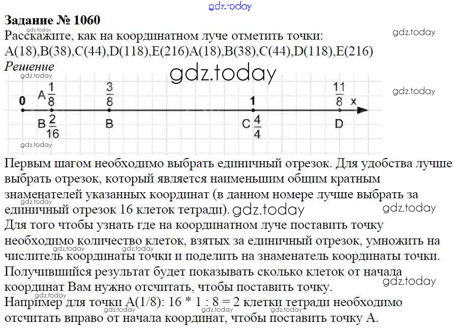 На страницах сайта gdz.today вы найдете учебный и вспомогательный материал, направленный на улучшения знаний школьной программы. ГДЗ - онлайн мир знаний Решение к главе2. Дробные числа (упражнения с 850 по 1849) 1060 Учебнику по Математике для 5 класса Виленкин, Жохов Мнемозина 2013