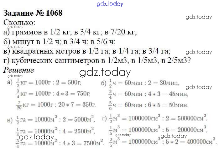 Ответы к Решение к главе2. Дробные числа (упражнения с 850 по 1849) 1068 Учебнику по Математике для 5 класса Виленкин, Жохов Мнемозина 2013