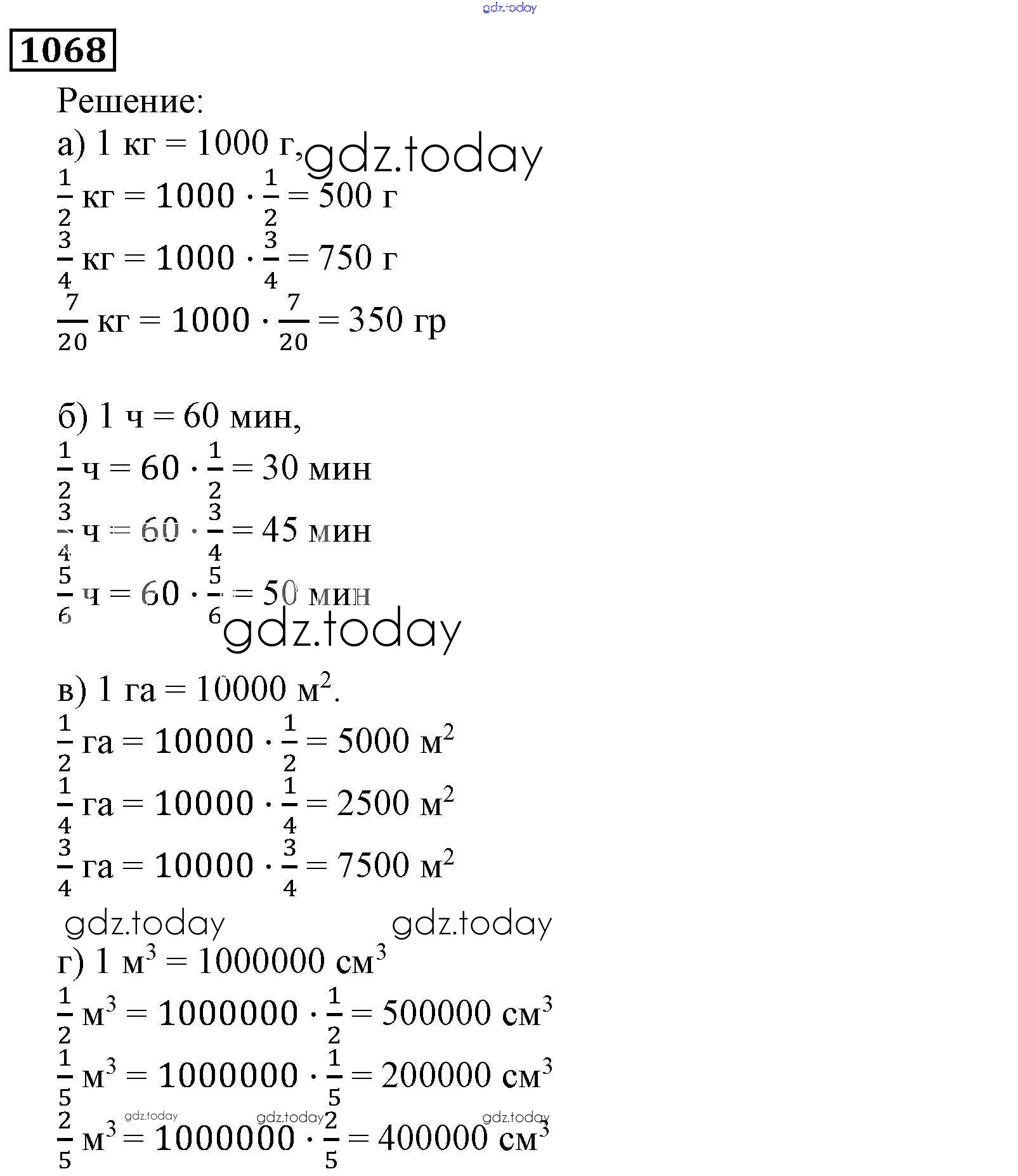 На страницах сайта gdz.today вы найдете учебный и вспомогательный материал, направленный на улучшения знаний школьной программы. ГДЗ - онлайн мир знаний Решение к главе2. Дробные числа (упражнения с 850 по 1849) 1068 Учебнику по Математике для 5 класса Виленкин, Жохов Мнемозина 2013