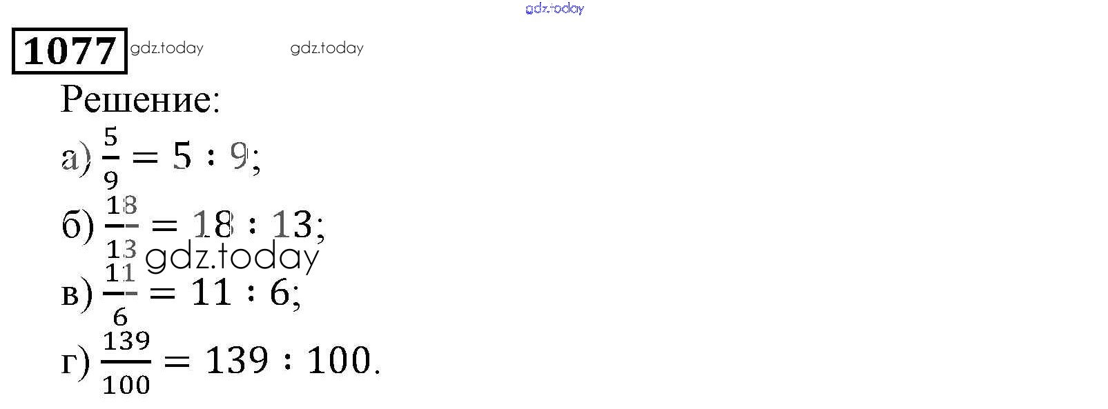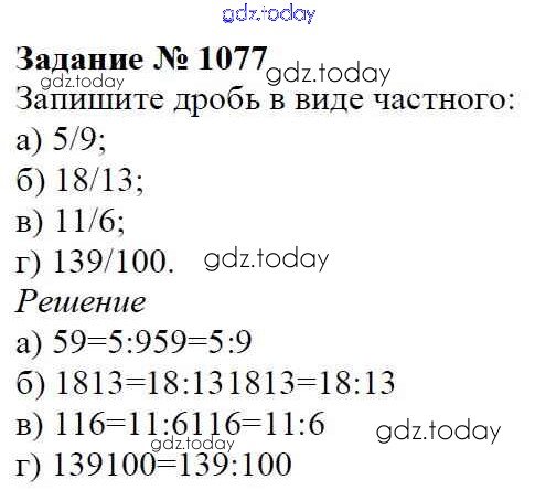 На страницах сайта gdz.today вы найдете учебный и вспомогательный материал, направленный на улучшения знаний школьной программы. ГДЗ - онлайн мир знаний Решение к главе2. Дробные числа (упражнения с 850 по 1849) 1077 Учебнику по Математике для 5 класса Виленкин, Жохов Мнемозина 2013