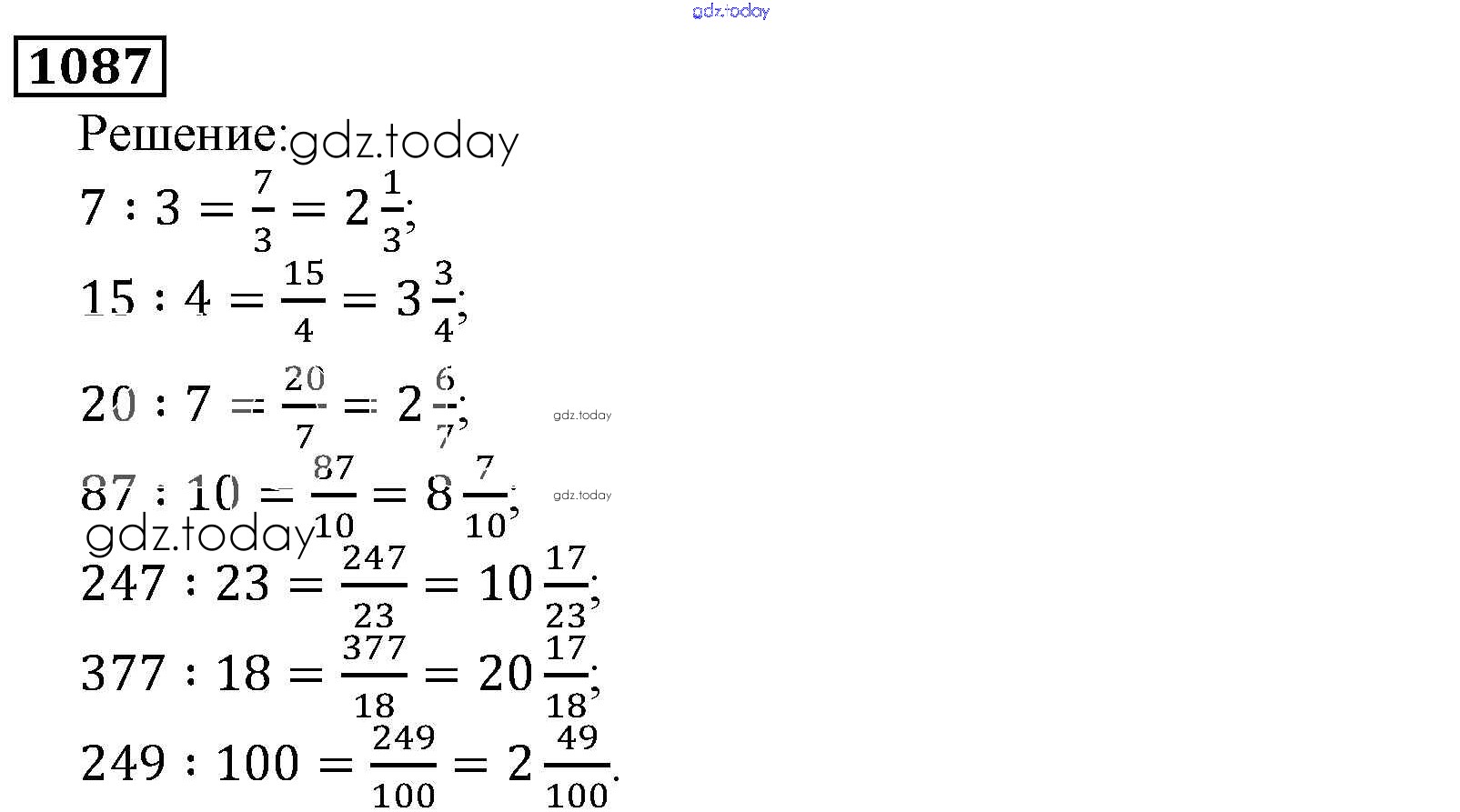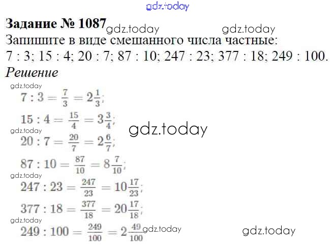 На страницах сайта gdz.today вы найдете учебный и вспомогательный материал, направленный на улучшения знаний школьной программы. ГДЗ - онлайн мир знаний Решение к главе2. Дробные числа (упражнения с 850 по 1849) 1087 Учебнику по Математике для 5 класса Виленкин, Жохов Мнемозина 2013