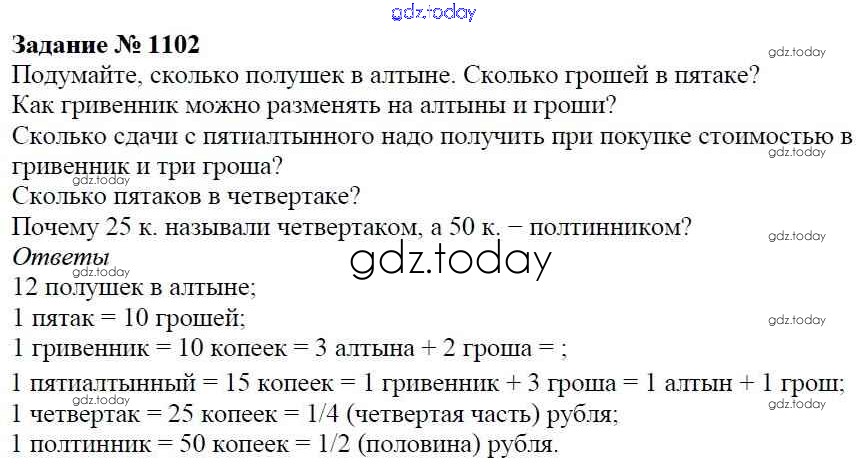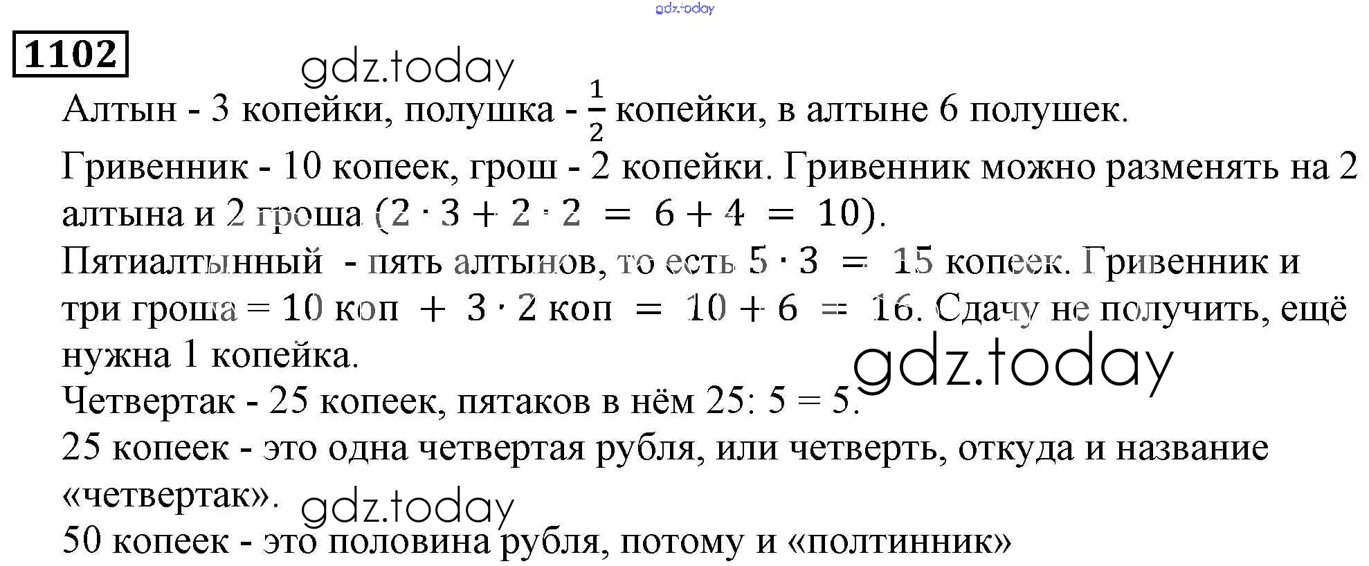 На страницах сайта gdz.today вы найдете учебный и вспомогательный материал, направленный на улучшения знаний школьной программы. ГДЗ - онлайн мир знаний Решение к главе2. Дробные числа (упражнения с 850 по 1849) 1102 Учебнику по Математике для 5 класса Виленкин, Жохов Мнемозина 2013