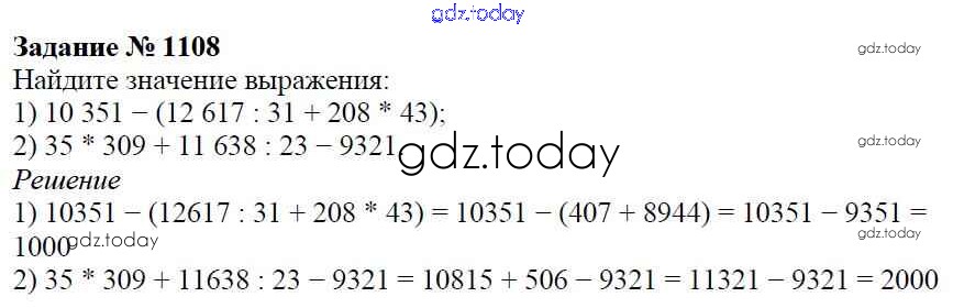 На страницах сайта gdz.today вы найдете учебный и вспомогательный материал, направленный на улучшения знаний школьной программы. ГДЗ - онлайн мир знаний Решение к главе2. Дробные числа (упражнения с 850 по 1849) 1108 Учебнику по Математике для 5 класса Виленкин, Жохов Мнемозина 2013