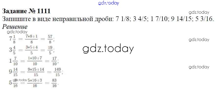 На страницах сайта gdz.today вы найдете учебный и вспомогательный материал, направленный на улучшения знаний школьной программы. ГДЗ - онлайн мир знаний Решение к главе2. Дробные числа (упражнения с 850 по 1849) 1111 Учебнику по Математике для 5 класса Виленкин, Жохов Мнемозина 2013