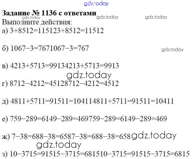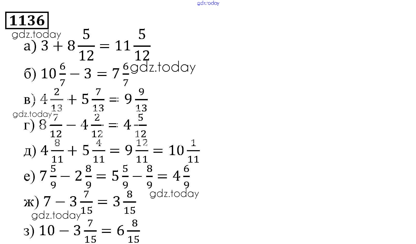 На страницах сайта gdz.today вы найдете учебный и вспомогательный материал, направленный на улучшения знаний школьной программы. ГДЗ - онлайн мир знаний Решение к главе2. Дробные числа (упражнения с 850 по 1849) 1136 Учебнику по Математике для 5 класса Виленкин, Жохов Мнемозина 2013