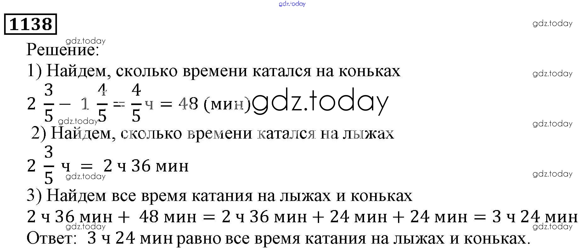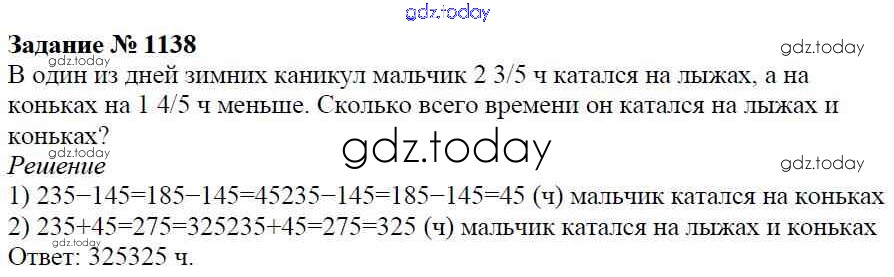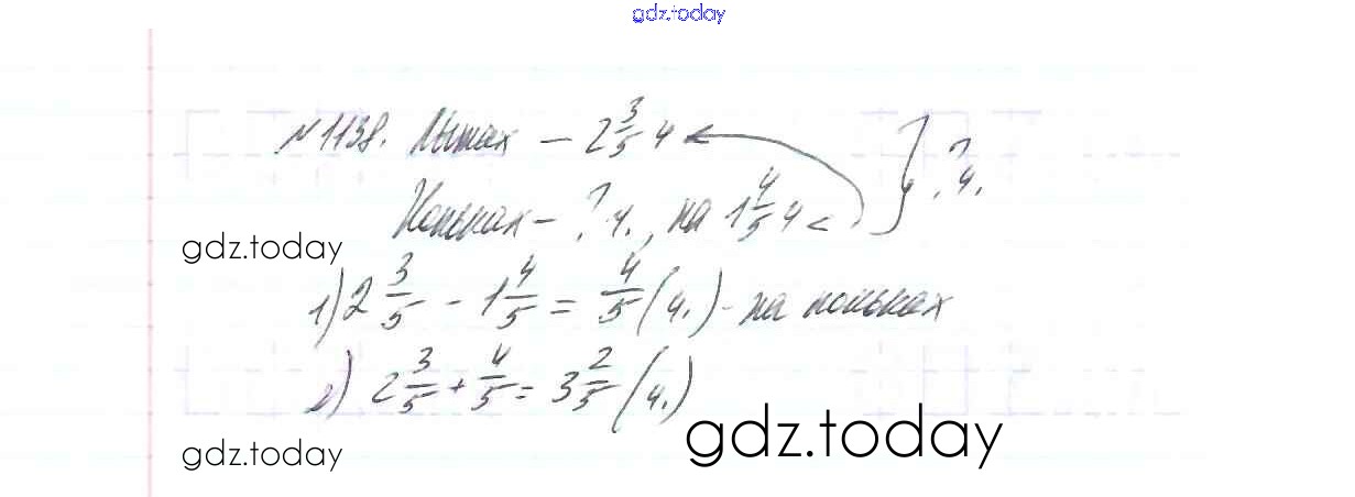 На страницах сайта gdz.today вы найдете учебный и вспомогательный материал, направленный на улучшения знаний школьной программы. ГДЗ - онлайн мир знаний Решение к главе2. Дробные числа (упражнения с 850 по 1849) 1138 Учебнику по Математике для 5 класса Виленкин, Жохов Мнемозина 2013