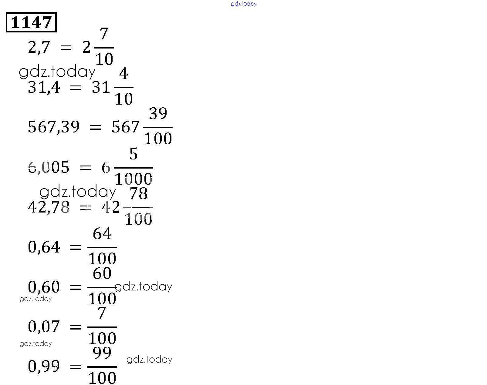 На страницах сайта gdz.today вы найдете учебный и вспомогательный материал, направленный на улучшения знаний школьной программы. ГДЗ - онлайн мир знаний Решение к главе2. Дробные числа (упражнения с 850 по 1849) 1147 Учебнику по Математике для 5 класса Виленкин, Жохов Мнемозина 2013