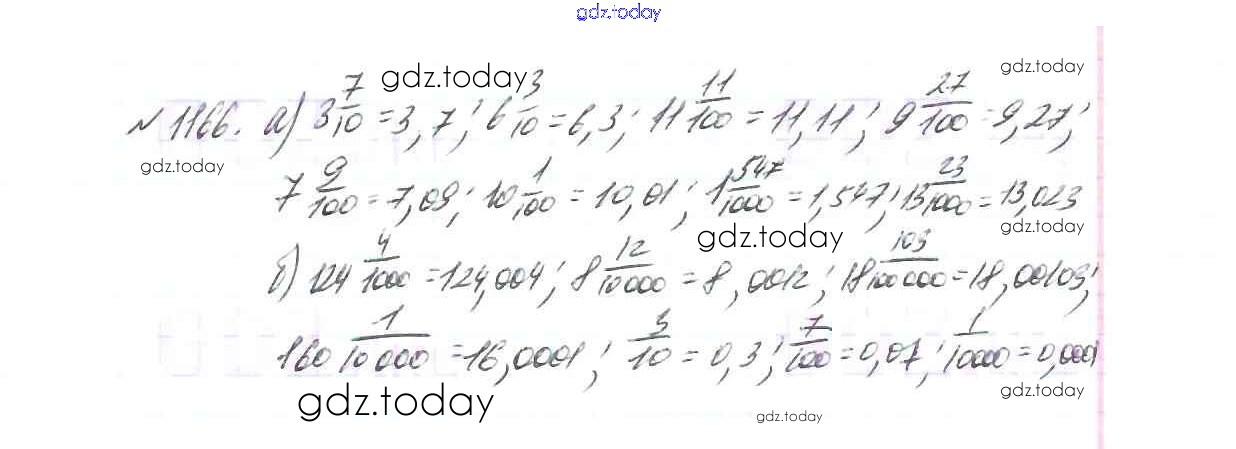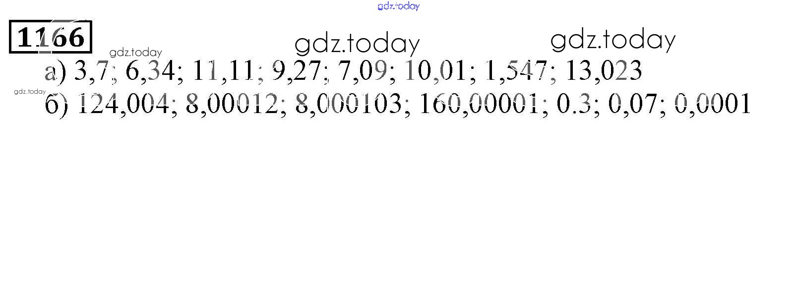 На страницах сайта gdz.today вы найдете учебный и вспомогательный материал, направленный на улучшения знаний школьной программы. ГДЗ - онлайн мир знаний Решение к главе2. Дробные числа (упражнения с 850 по 1849) 1166 Учебнику по Математике для 5 класса Виленкин, Жохов Мнемозина 2013