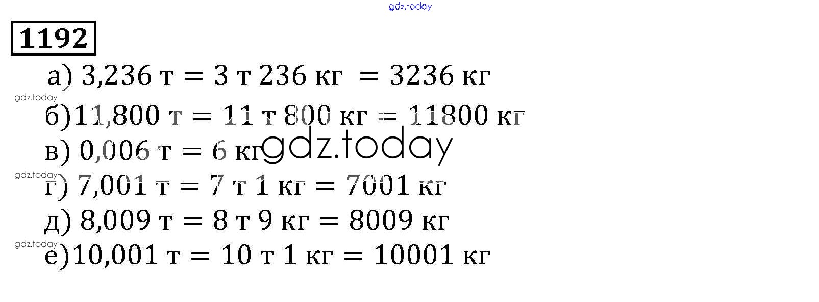На страницах сайта gdz.today вы найдете учебный и вспомогательный материал, направленный на улучшения знаний школьной программы. ГДЗ - онлайн мир знаний Решение к главе2. Дробные числа (упражнения с 850 по 1849) 1192 Учебнику по Математике для 5 класса Виленкин, Жохов Мнемозина 2013