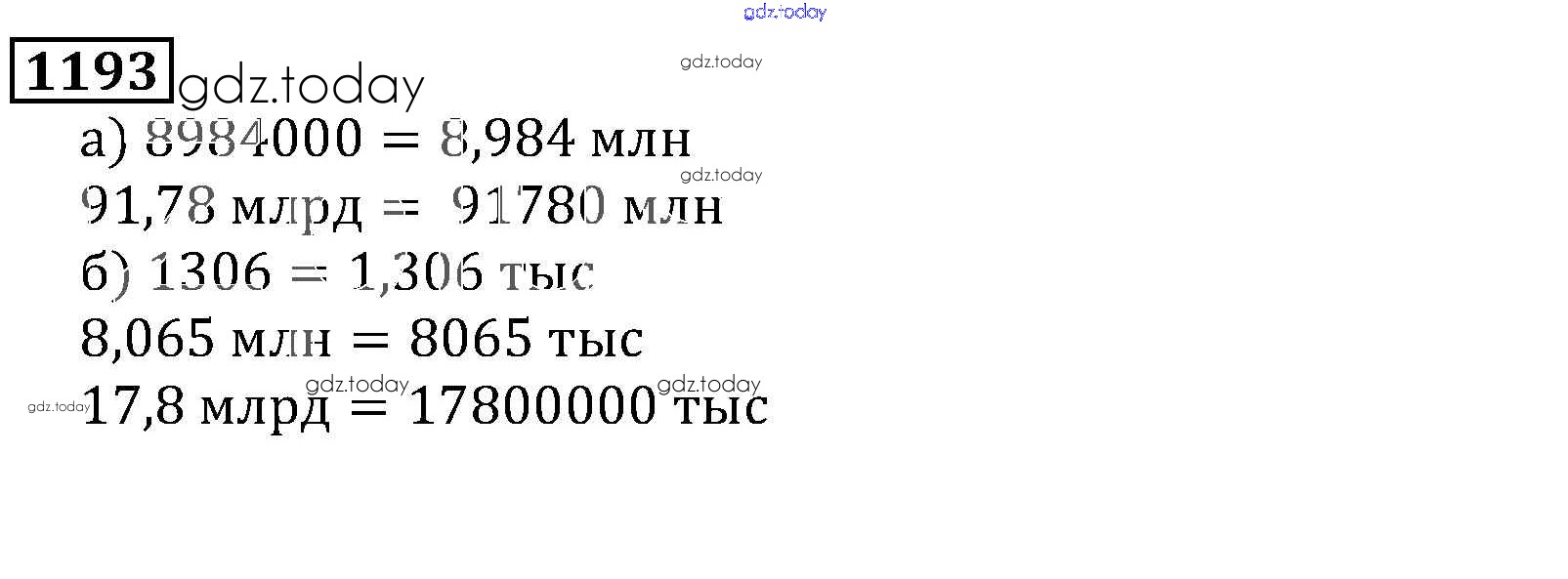 На страницах сайта gdz.today вы найдете учебный и вспомогательный материал, направленный на улучшения знаний школьной программы. ГДЗ - онлайн мир знаний Решение к главе2. Дробные числа (упражнения с 850 по 1849) 1193 Учебнику по Математике для 5 класса Виленкин, Жохов Мнемозина 2013