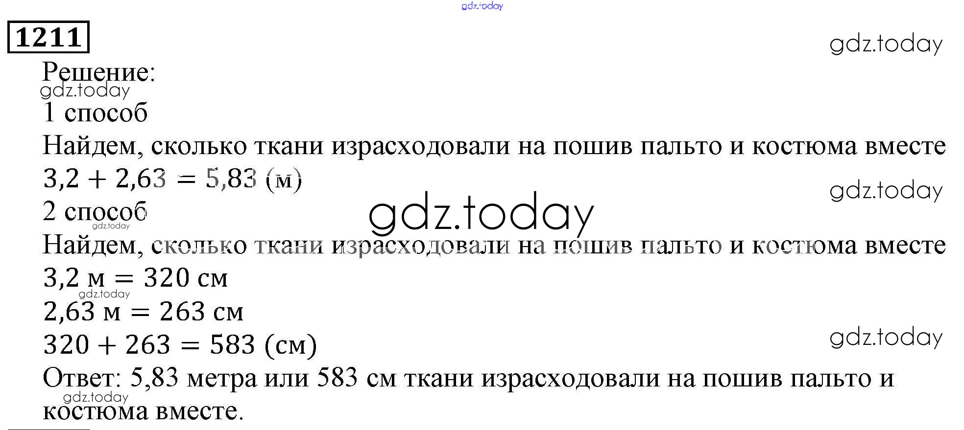 На страницах сайта gdz.today вы найдете учебный и вспомогательный материал, направленный на улучшения знаний школьной программы. ГДЗ - онлайн мир знаний Решение к главе2. Дробные числа (упражнения с 850 по 1849) 1211 Учебнику по Математике для 5 класса Виленкин, Жохов Мнемозина 2013