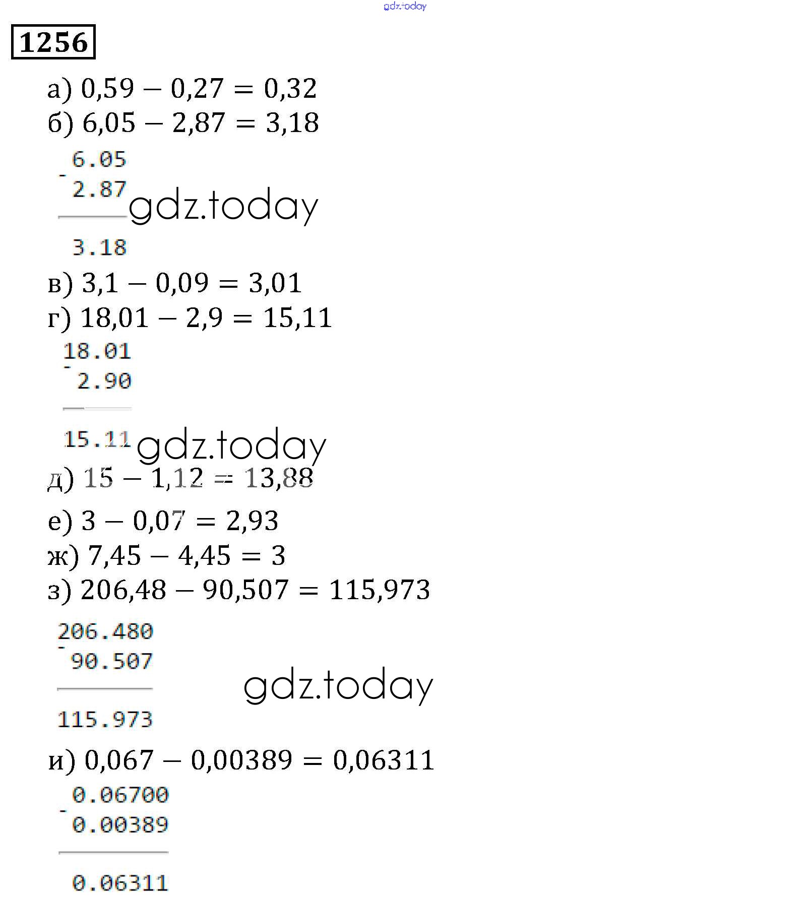 На страницах сайта gdz.today вы найдете учебный и вспомогательный материал, направленный на улучшения знаний школьной программы. ГДЗ - онлайн мир знаний Решение к главе2. Дробные числа (упражнения с 850 по 1849) 1256 Учебнику по Математике для 5 класса Виленкин, Жохов Мнемозина 2013