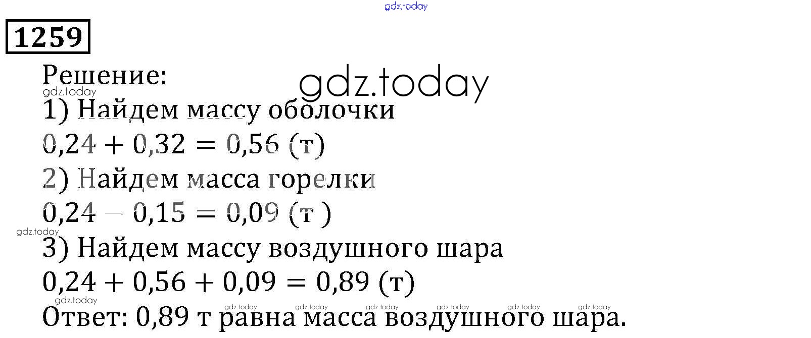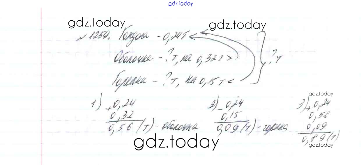 На страницах сайта gdz.today вы найдете учебный и вспомогательный материал, направленный на улучшения знаний школьной программы. ГДЗ - онлайн мир знаний Решение к главе2. Дробные числа (упражнения с 850 по 1849) 1259 Учебнику по Математике для 5 класса Виленкин, Жохов Мнемозина 2013
