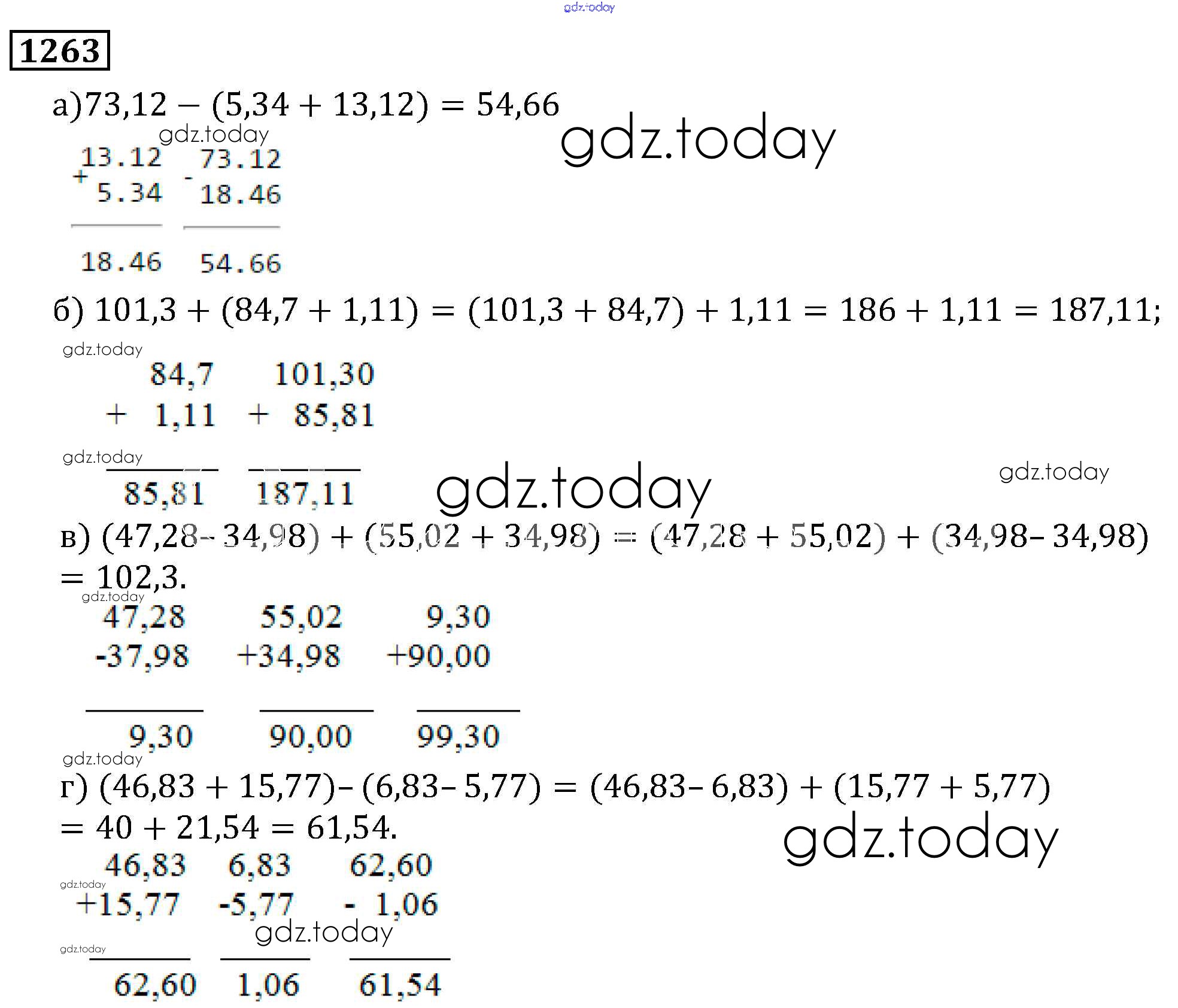 На страницах сайта gdz.today вы найдете учебный и вспомогательный материал, направленный на улучшения знаний школьной программы. ГДЗ - онлайн мир знаний Решение к главе2. Дробные числа (упражнения с 850 по 1849) 1263 Учебнику по Математике для 5 класса Виленкин, Жохов Мнемозина 2013