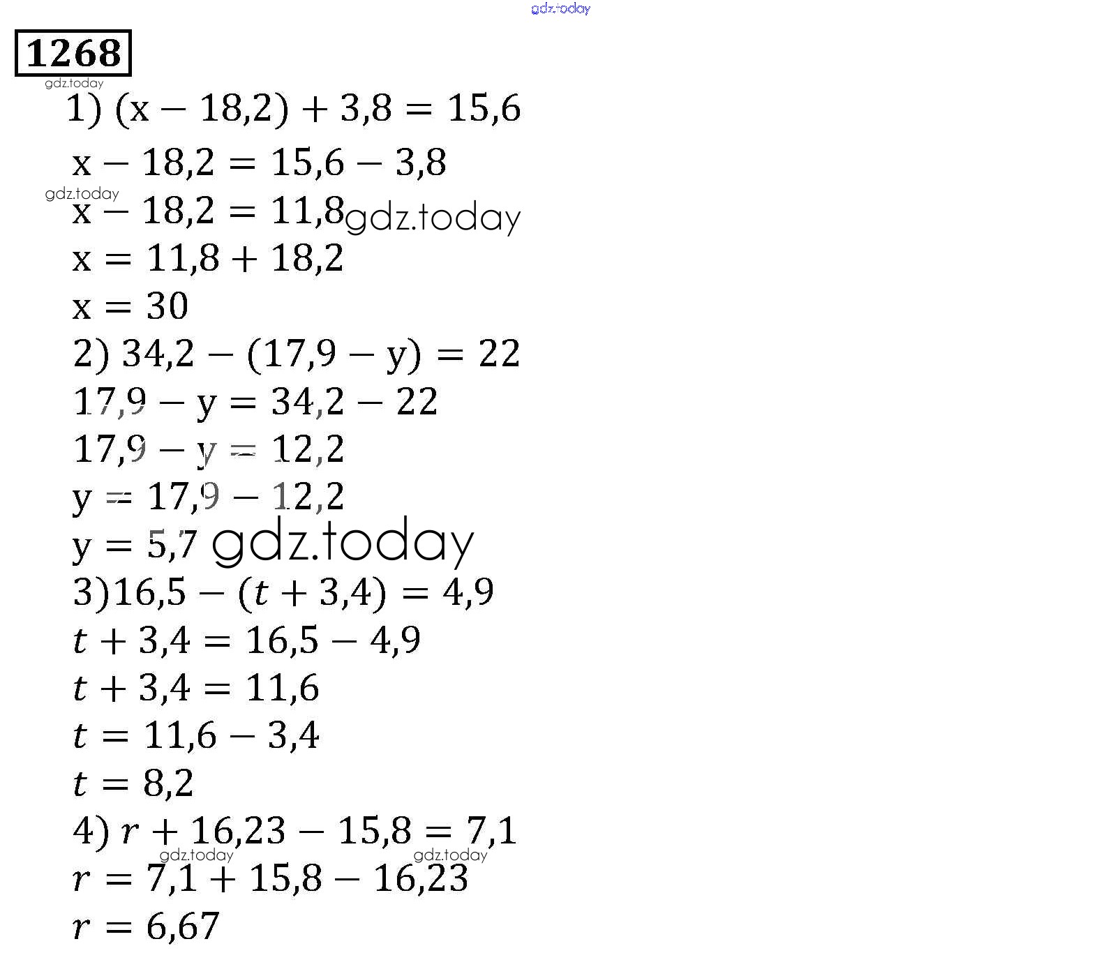 На страницах сайта gdz.today вы найдете учебный и вспомогательный материал, направленный на улучшения знаний школьной программы. ГДЗ - онлайн мир знаний Решение к главе2. Дробные числа (упражнения с 850 по 1849) 1268 Учебнику по Математике для 5 класса Виленкин, Жохов Мнемозина 2013