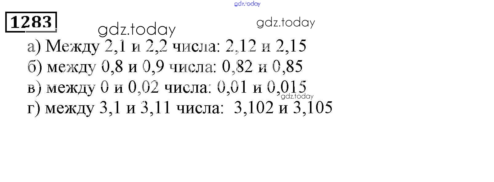 На страницах сайта gdz.today вы найдете учебный и вспомогательный материал, направленный на улучшения знаний школьной программы. ГДЗ - онлайн мир знаний Решение к главе2. Дробные числа (упражнения с 850 по 1849) 1283 Учебнику по Математике для 5 класса Виленкин, Жохов Мнемозина 2013