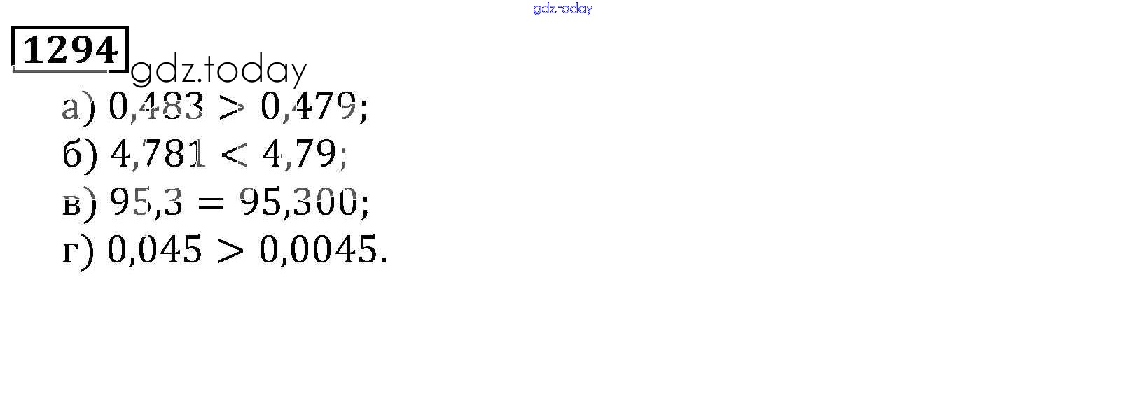 На страницах сайта gdz.today вы найдете учебный и вспомогательный материал, направленный на улучшения знаний школьной программы. ГДЗ - онлайн мир знаний Решение к главе2. Дробные числа (упражнения с 850 по 1849) 1294 Учебнику по Математике для 5 класса Виленкин, Жохов Мнемозина 2013