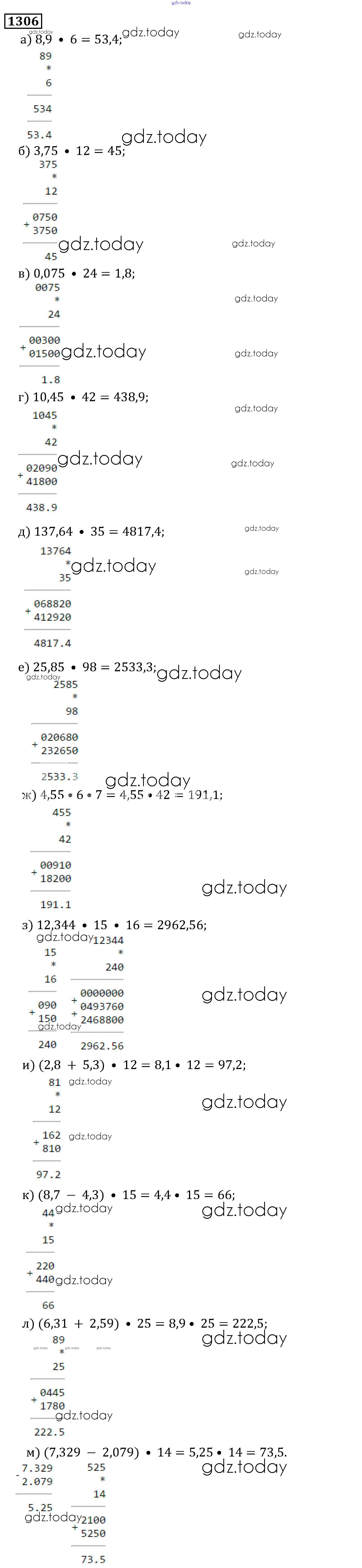 На страницах сайта gdz.today вы найдете учебный и вспомогательный материал, направленный на улучшения знаний школьной программы. ГДЗ - онлайн мир знаний Решение к главе2. Дробные числа (упражнения с 850 по 1849) 1306 Учебнику по Математике для 5 класса Виленкин, Жохов Мнемозина 2013