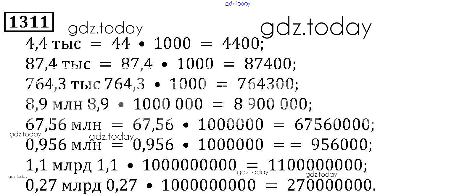 На страницах сайта gdz.today вы найдете учебный и вспомогательный материал, направленный на улучшения знаний школьной программы. ГДЗ - онлайн мир знаний Решение к главе2. Дробные числа (упражнения с 850 по 1849) 1311 Учебнику по Математике для 5 класса Виленкин, Жохов Мнемозина 2013