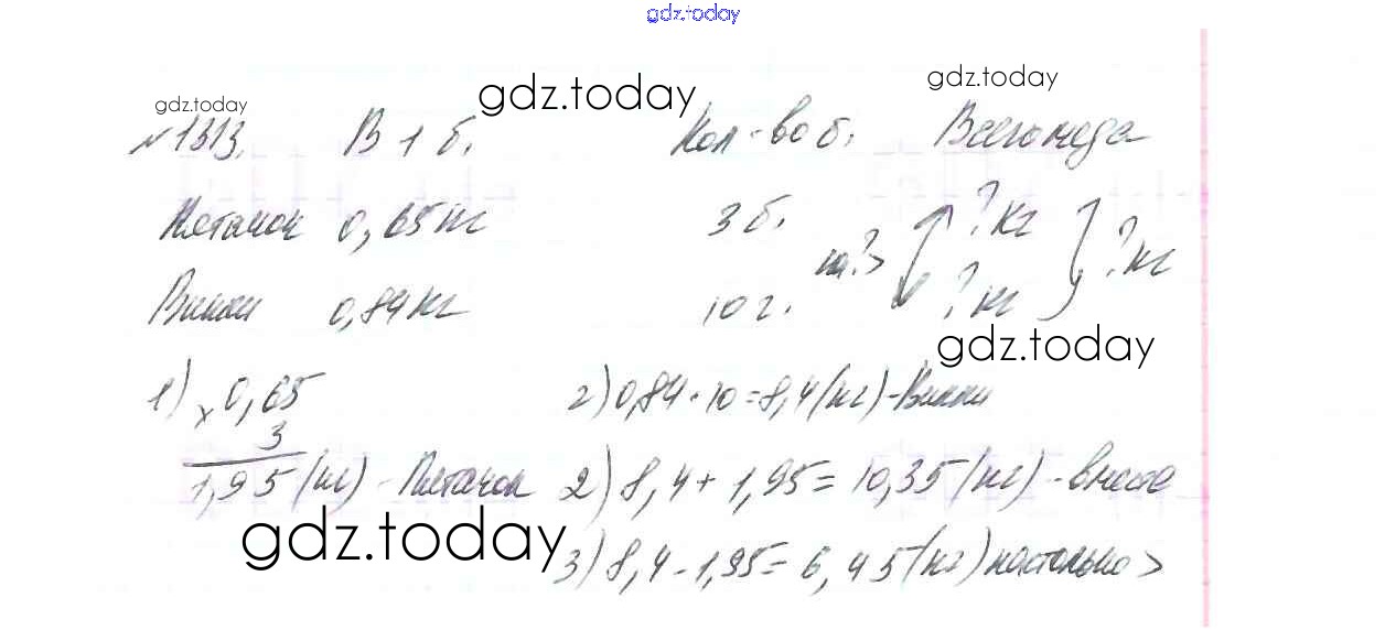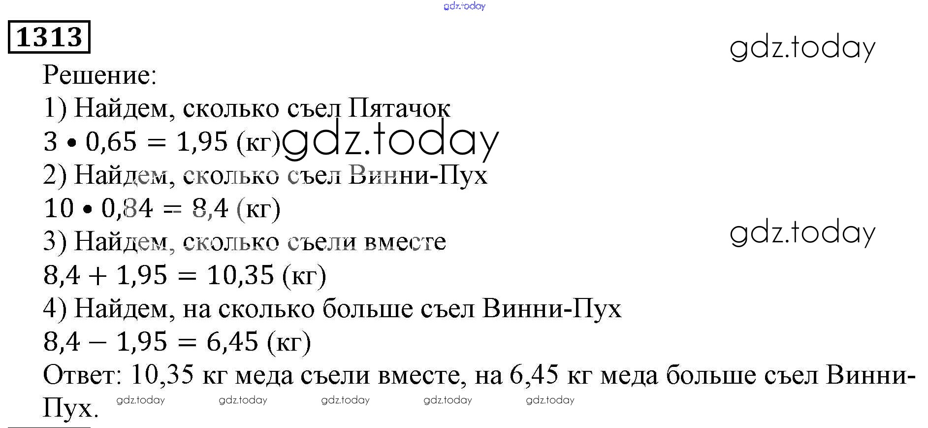 На страницах сайта gdz.today вы найдете учебный и вспомогательный материал, направленный на улучшения знаний школьной программы. ГДЗ - онлайн мир знаний Решение к главе2. Дробные числа (упражнения с 850 по 1849) 1313 Учебнику по Математике для 5 класса Виленкин, Жохов Мнемозина 2013
