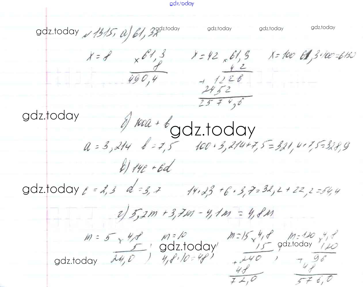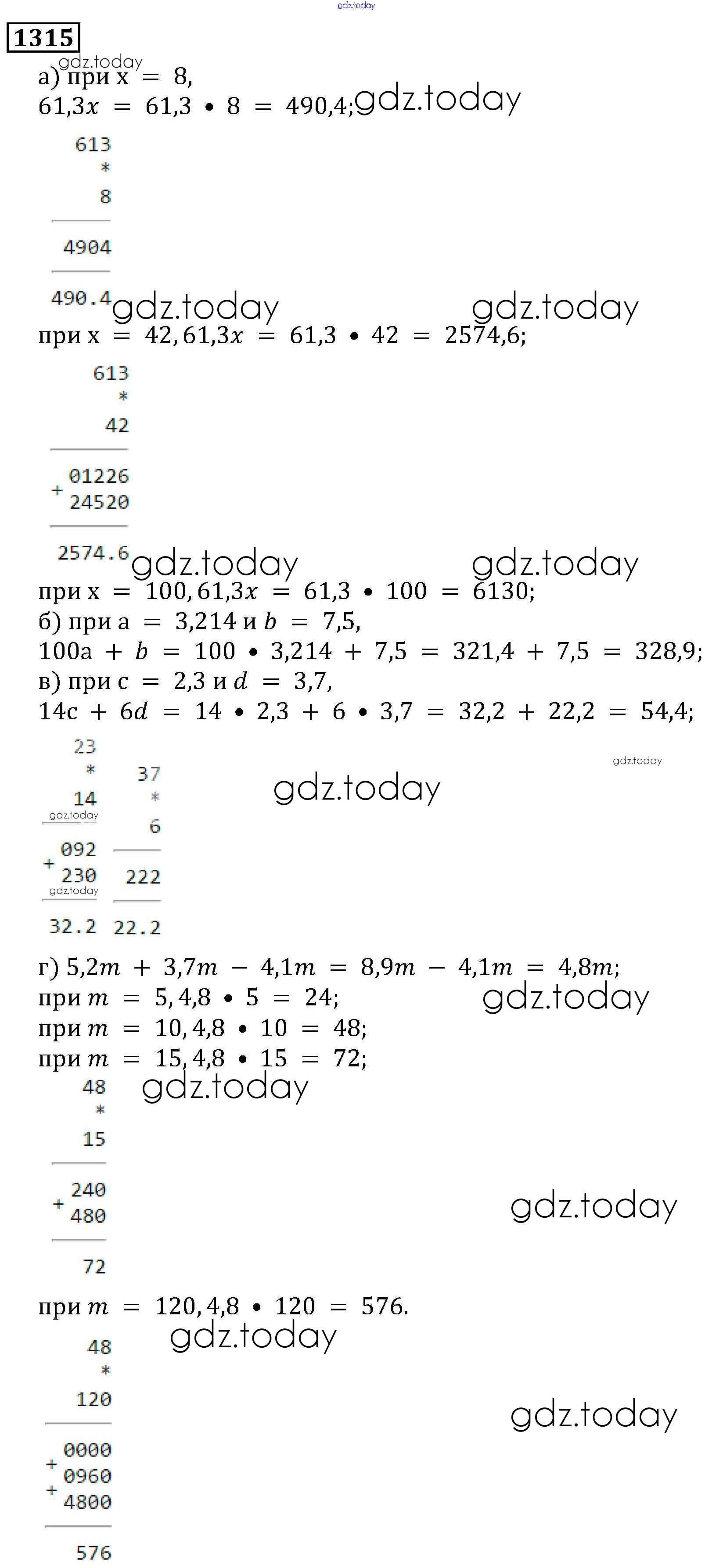 На страницах сайта gdz.today вы найдете учебный и вспомогательный материал, направленный на улучшения знаний школьной программы. ГДЗ - онлайн мир знаний Решение к главе2. Дробные числа (упражнения с 850 по 1849) 1315 Учебнику по Математике для 5 класса Виленкин, Жохов Мнемозина 2013