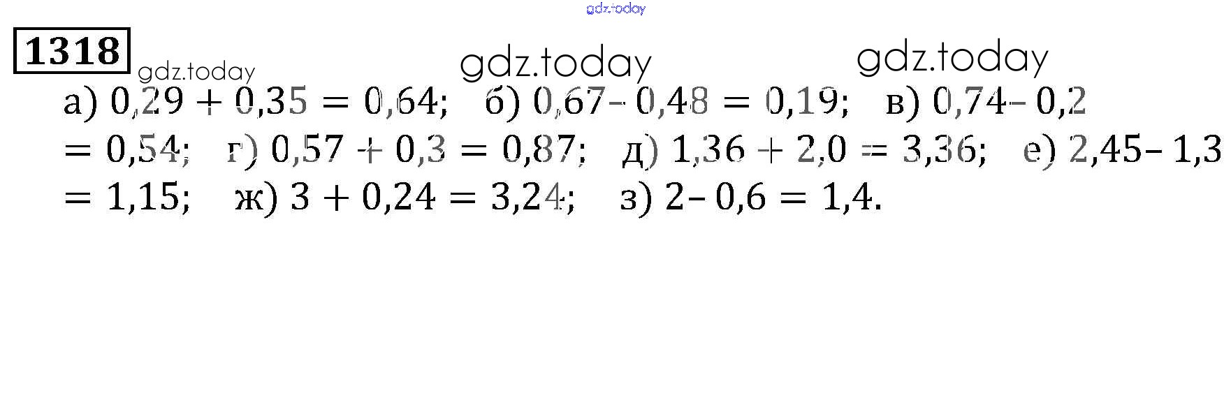 На страницах сайта gdz.today вы найдете учебный и вспомогательный материал, направленный на улучшения знаний школьной программы. ГДЗ - онлайн мир знаний Решение к главе2. Дробные числа (упражнения с 850 по 1849) 1318 Учебнику по Математике для 5 класса Виленкин, Жохов Мнемозина 2013