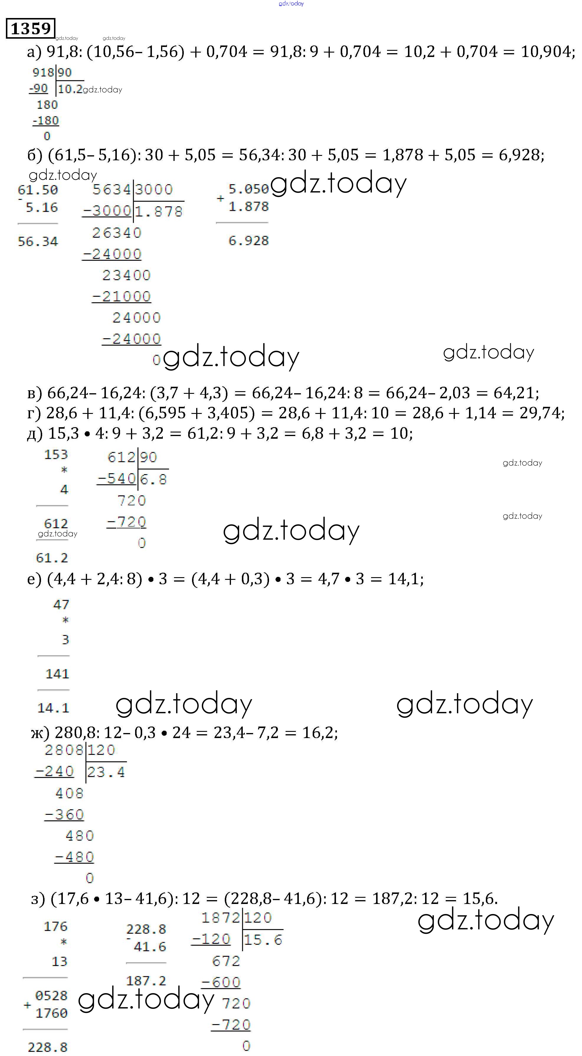 На страницах сайта gdz.today вы найдете учебный и вспомогательный материал, направленный на улучшения знаний школьной программы. ГДЗ - онлайн мир знаний Решение к главе2. Дробные числа (упражнения с 850 по 1849) 1359 Учебнику по Математике для 5 класса Виленкин, Жохов Мнемозина 2013