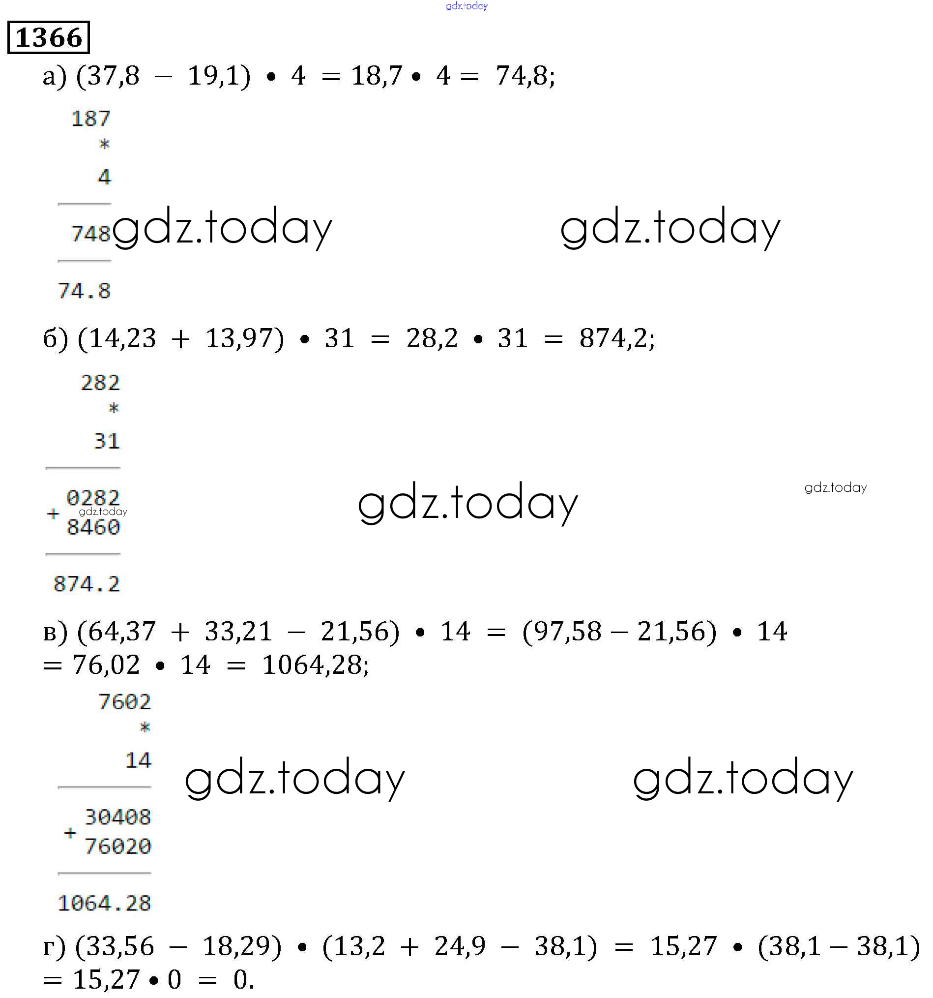 На страницах сайта gdz.today вы найдете учебный и вспомогательный материал, направленный на улучшения знаний школьной программы. ГДЗ - онлайн мир знаний Решение к главе2. Дробные числа (упражнения с 850 по 1849) 1366 Учебнику по Математике для 5 класса Виленкин, Жохов Мнемозина 2013