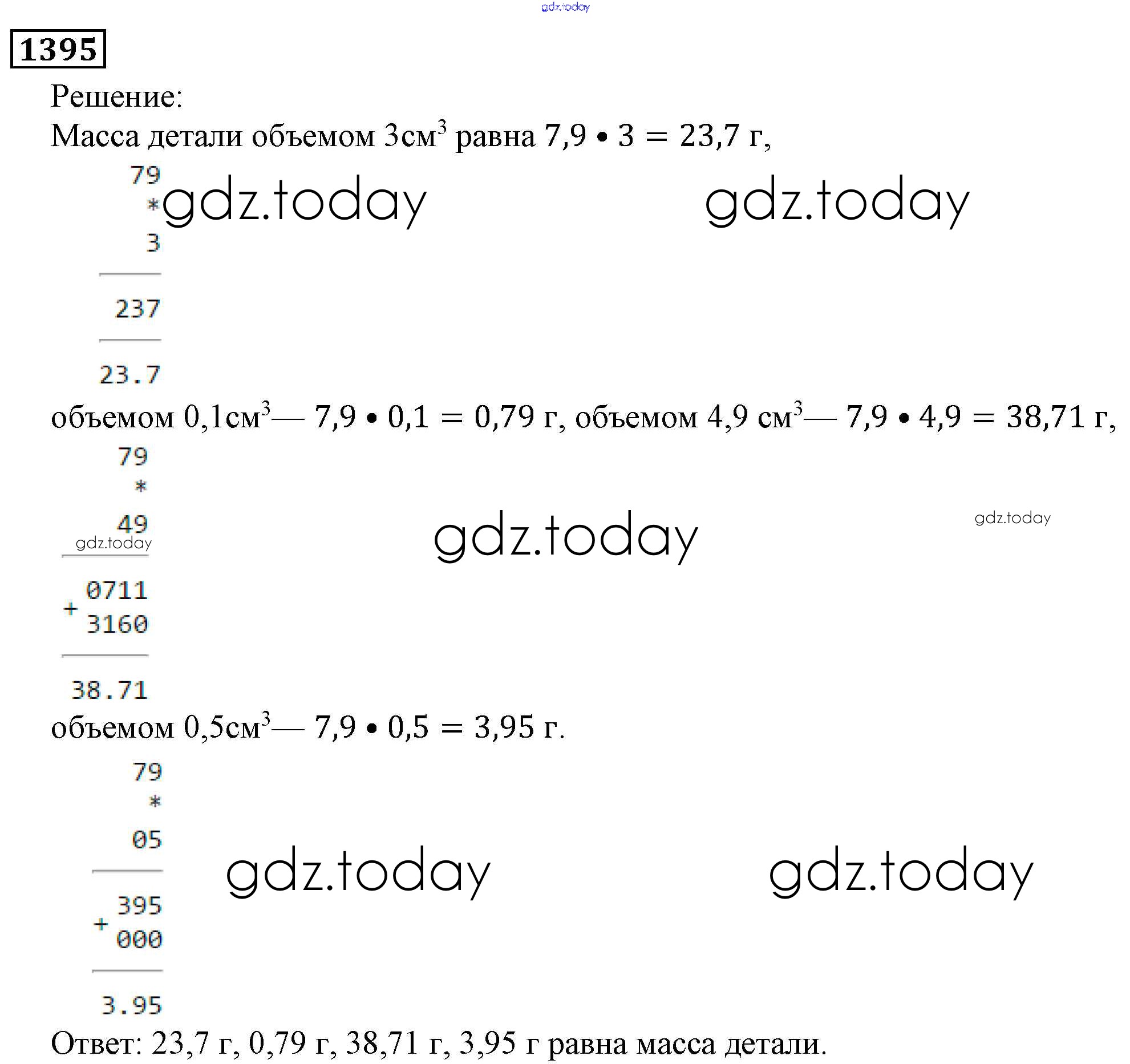 На страницах сайта gdz.today вы найдете учебный и вспомогательный материал, направленный на улучшения знаний школьной программы. ГДЗ - онлайн мир знаний Решение к главе2. Дробные числа (упражнения с 850 по 1849) 1395 Учебнику по Математике для 5 класса Виленкин, Жохов Мнемозина 2013