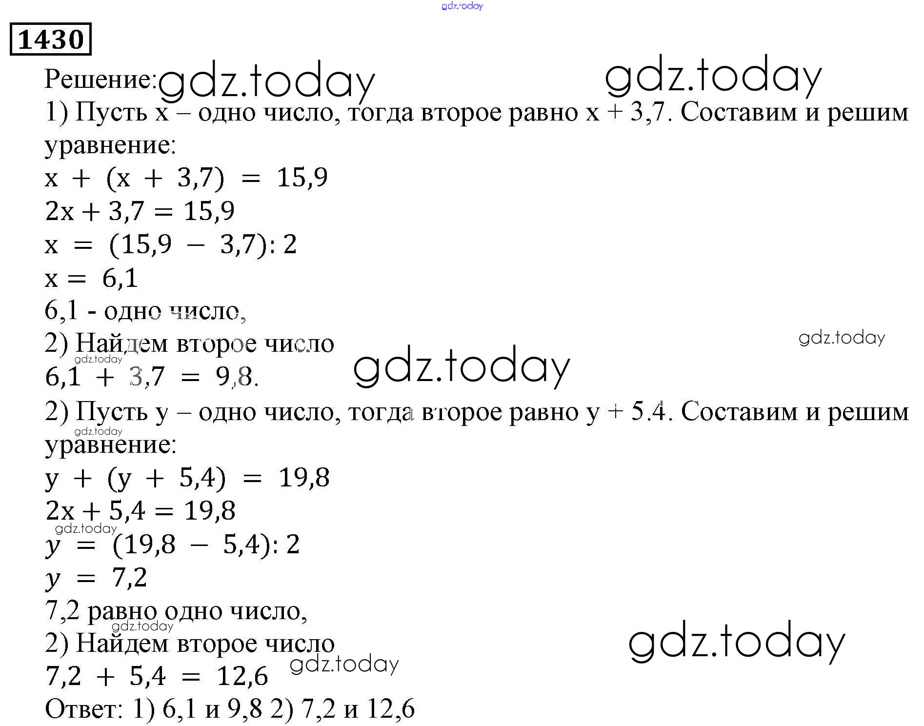 На страницах сайта gdz.today вы найдете учебный и вспомогательный материал, направленный на улучшения знаний школьной программы. ГДЗ - онлайн мир знаний Решение к главе2. Дробные числа (упражнения с 850 по 1849) 1430 Учебнику по Математике для 5 класса Виленкин, Жохов Мнемозина 2013