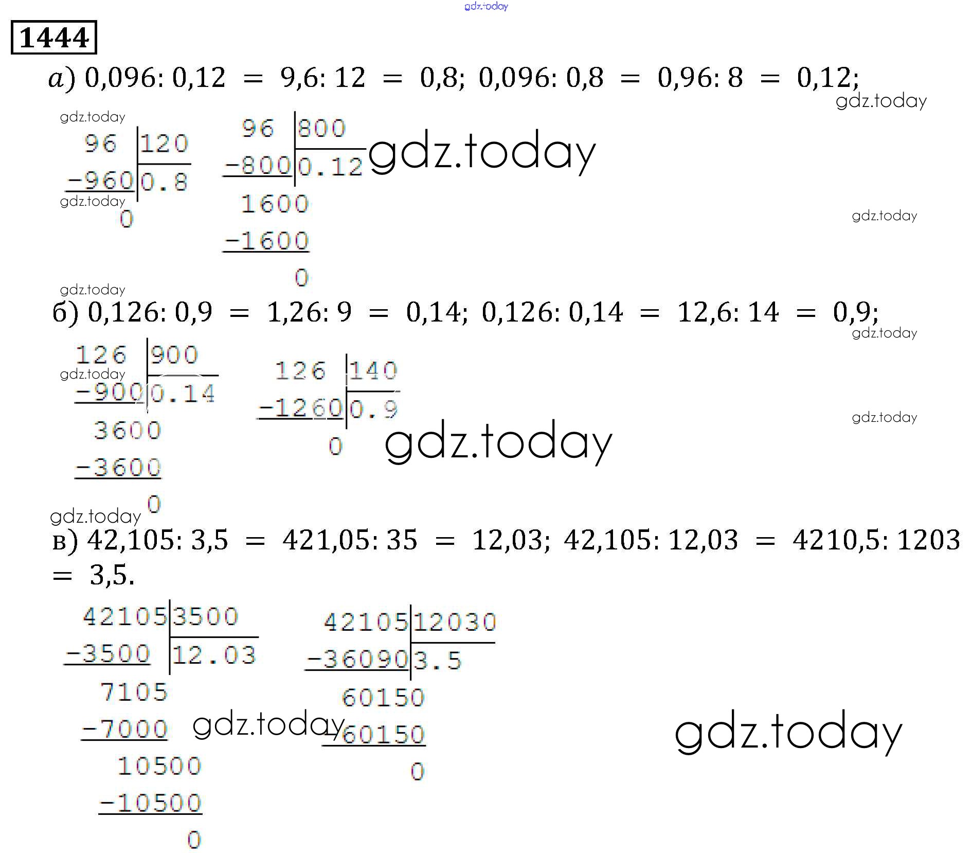 На страницах сайта gdz.today вы найдете учебный и вспомогательный материал, направленный на улучшения знаний школьной программы. ГДЗ - онлайн мир знаний Решение к главе2. Дробные числа (упражнения с 850 по 1849) 1444 Учебнику по Математике для 5 класса Виленкин, Жохов Мнемозина 2013